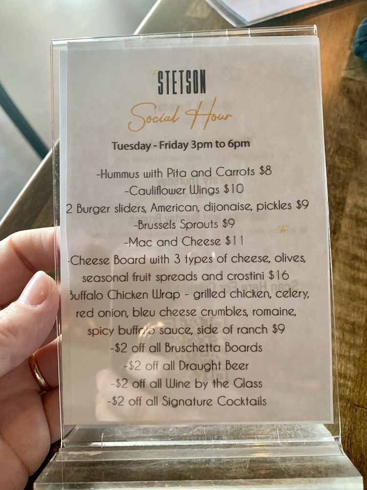 The Stetson Social is a trendy cocktail bar in Peoria, AZ, offering Mediterranean cuisine and delicious sandwiches. With a contemporary atmosphere and excellent service, customers rave about the wonderful food and drinks, especially during happy hour. From bruschetta appetizers to pasta of the day, the menu offers a variety of tasty dishes. The lamb slider and chicken wrap are highly recommended, along with their specialty cocktails. Customers praise the friendly staff, like bartenders Emily and Melissa, for their great service. The covered outdoor seating and private dining options make it perfect for any occasion. Whether you're looking to watch a game or celebrate a special event, The Stetson Social is a top choice. A place where good food, great drinks, and friendly crowds come together for a memorable experience.